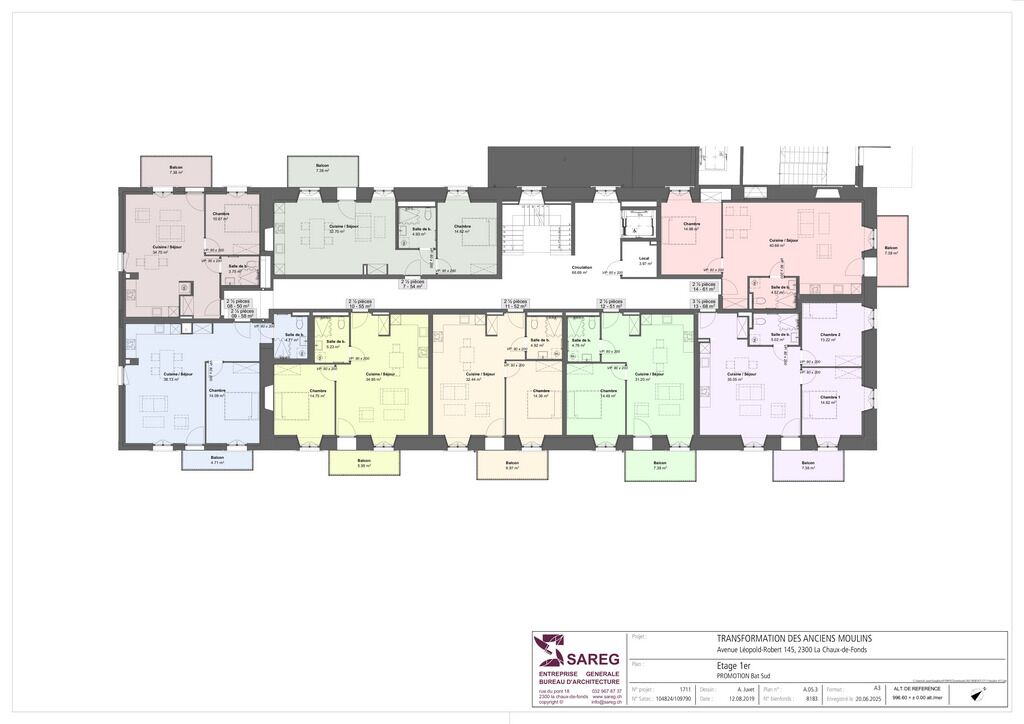 Ce bâtiment fait partie d'un ensemble emblématique de trois immeubles historiques de La Chaux-de-Fonds : les Silos Est, les Silos Ouest et les Moulins. Construits dans les années 1890 pour des activités agricoles, ces bâtiments entament aujourd'hui une nouvelle vie. Dès cet automne, le Moulin Sud accueillera ses premiers locataires dans 30 logements rénovés et conçus sans barrières architecturales. Une reconversion ambitieuse, alliant cachet d'origine et confort moderne.