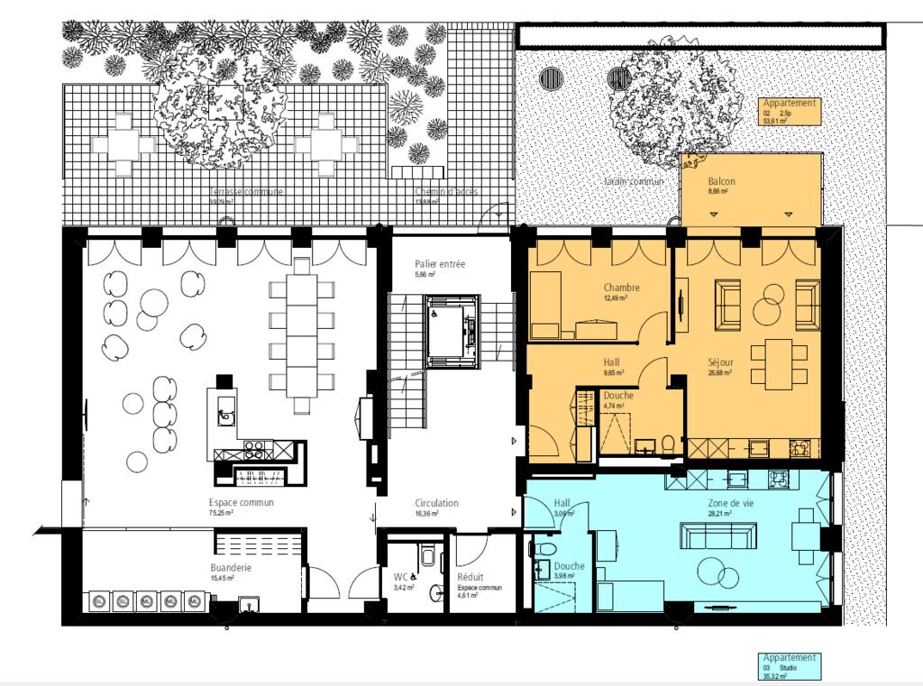 - Surface habitable de 35 m2