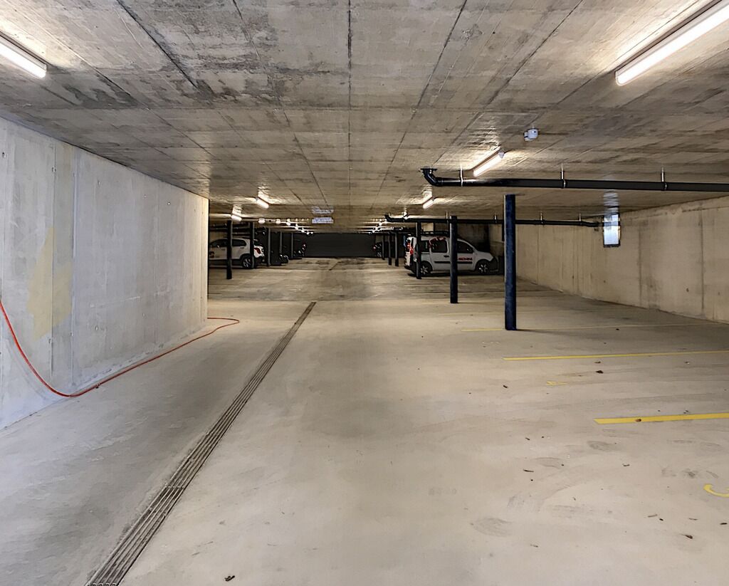 Plusieurs places de parc intérieures à louer, dans un garage collectif.
