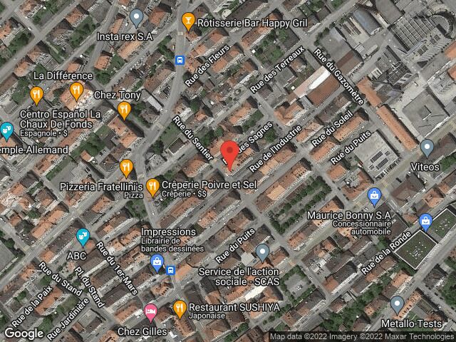 Quartier à l'Est de la ville de La Chaux-de-Fonds, à deux pas de la place du marché et à proximité des transports publics.