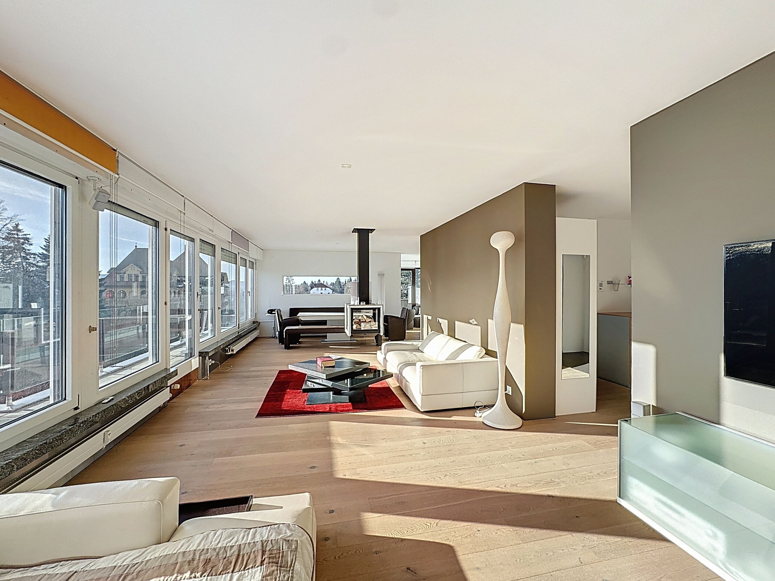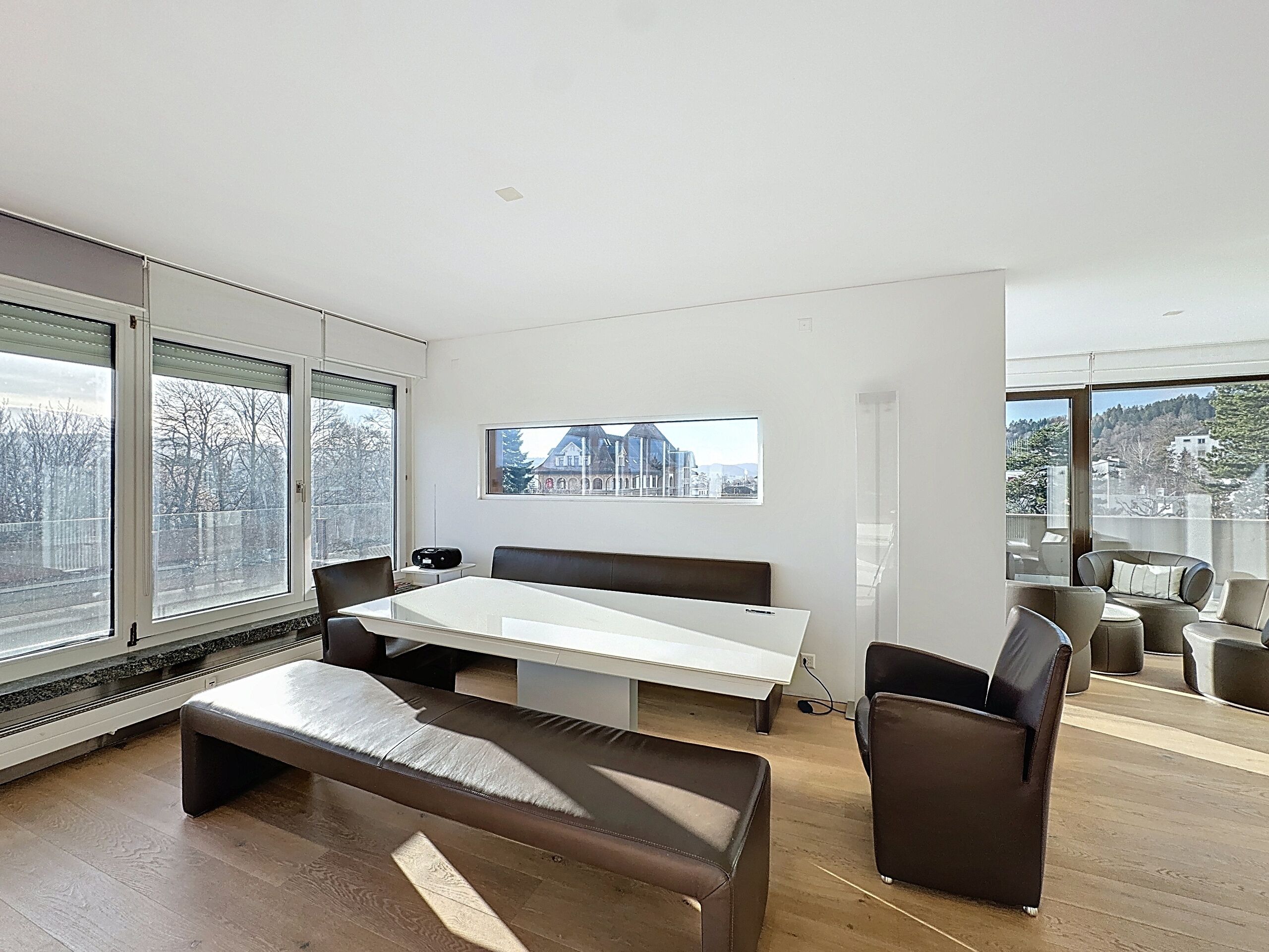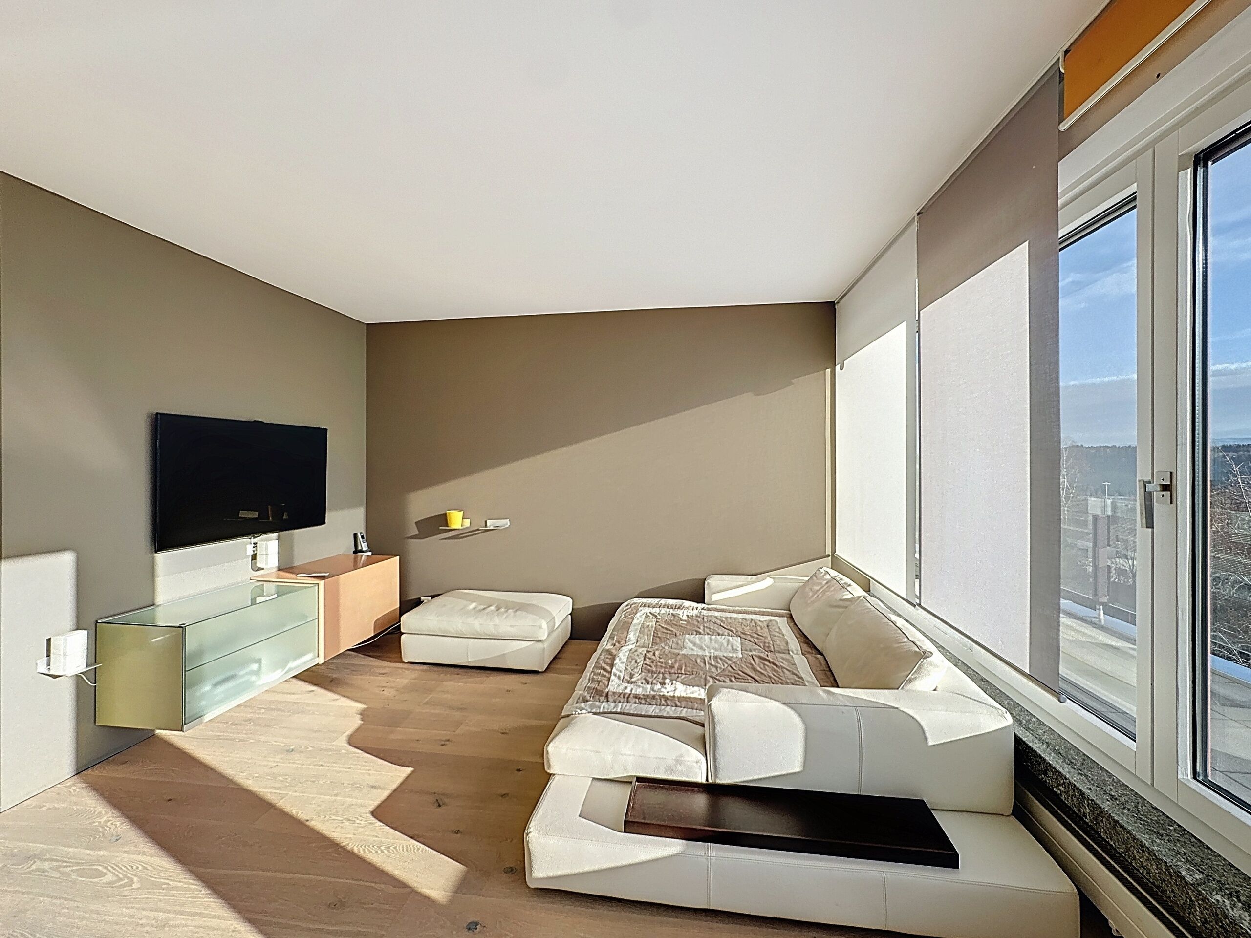 Ce superbe penthouse en attique de 5.5 pièces, d’une surface de 150 m² et situé au 4ème étage, incarne un art de vivre unique, alliant volumes généreux, luminosité exceptionnelle et prestations de standing. Véritable havre de paix, il s’ouvre sur une magnifique terrasse panoramique de 95 m², offrant une vue dégagée sur la ville et les collines environnantes.