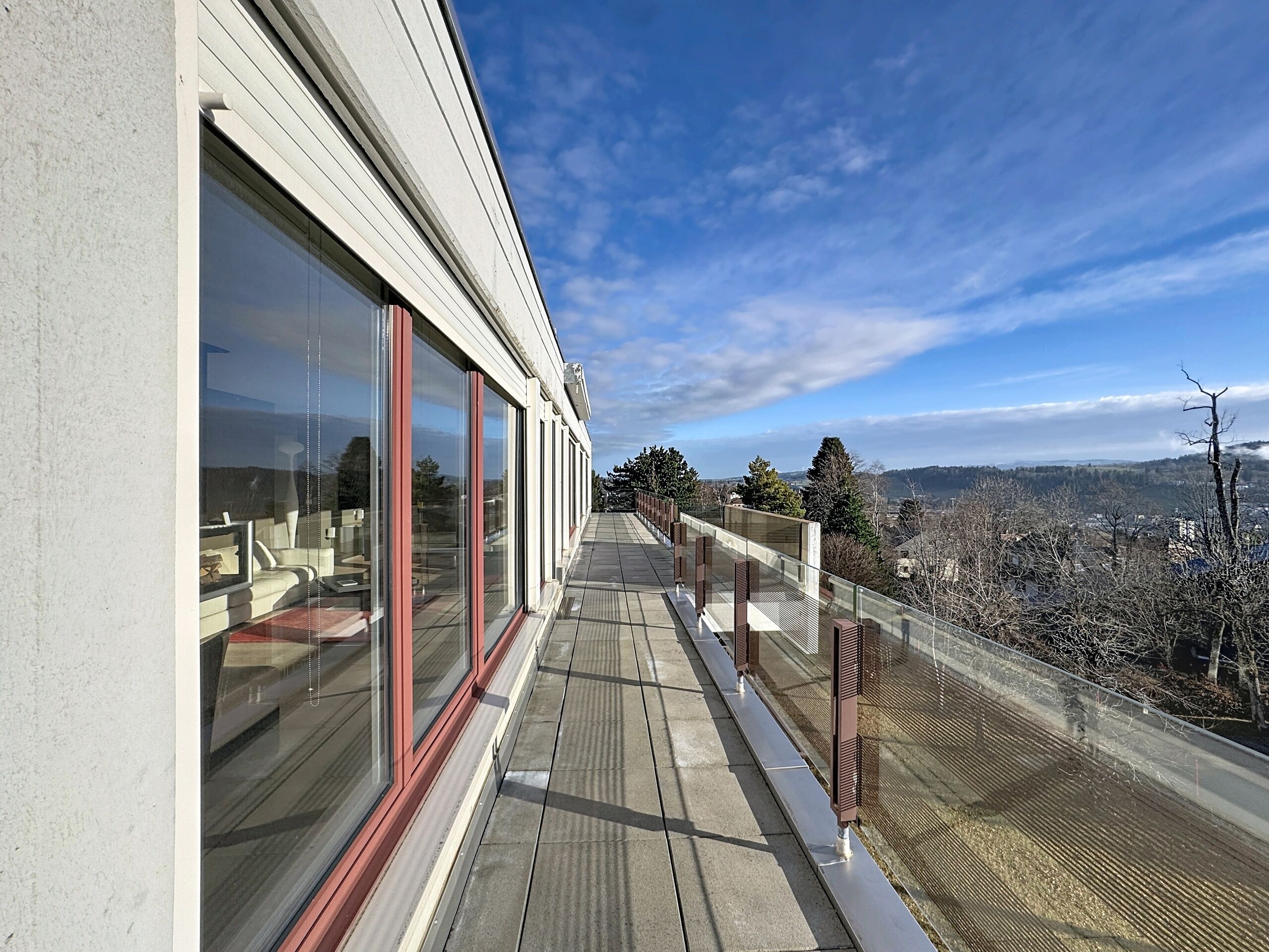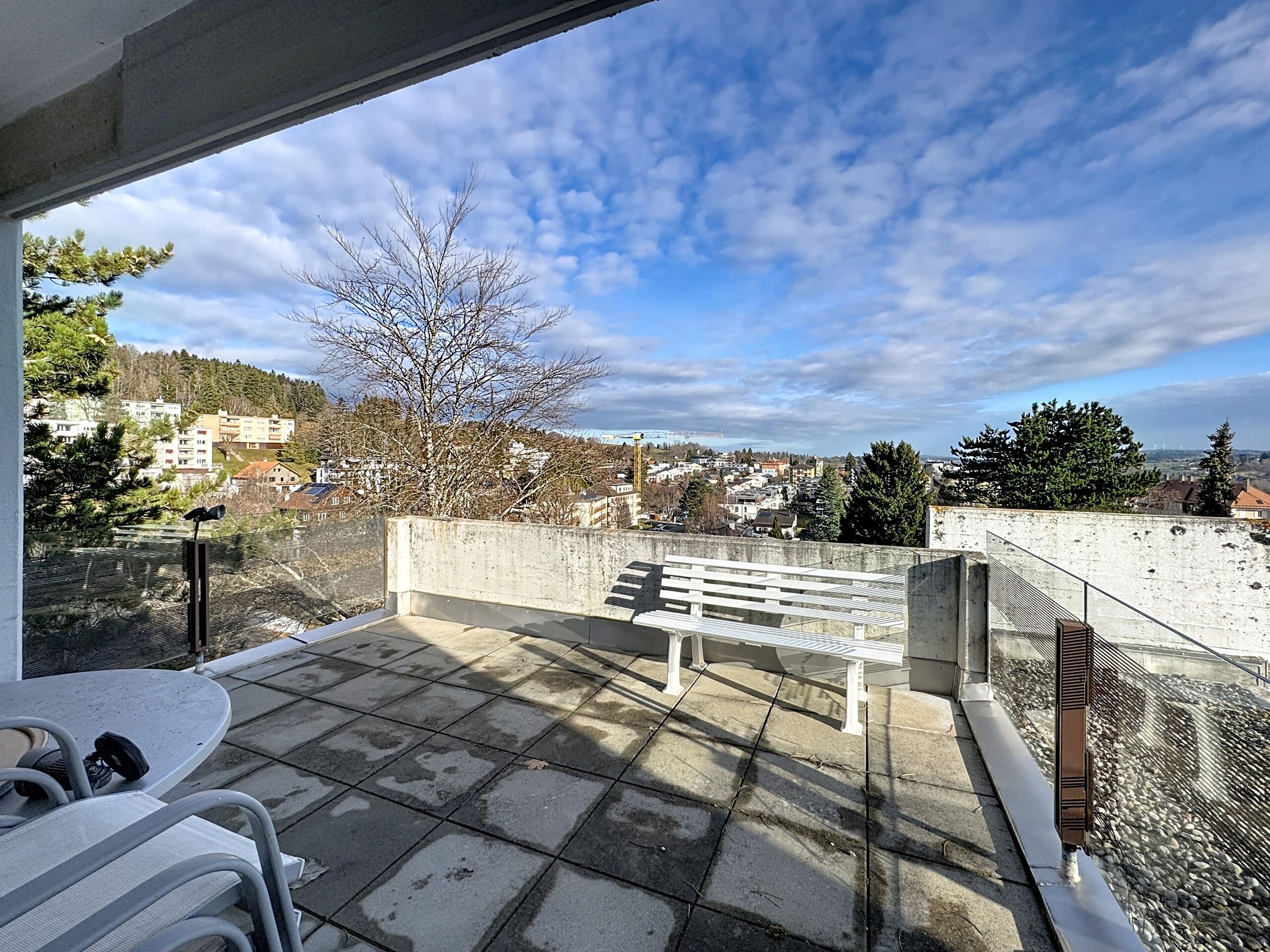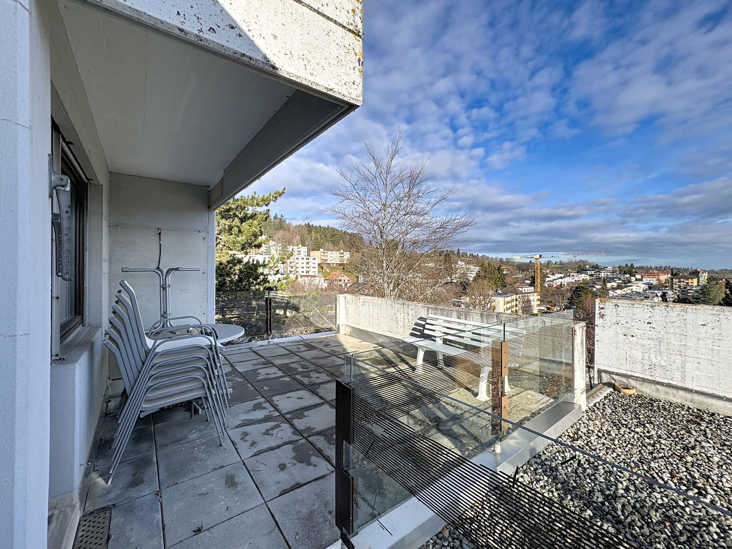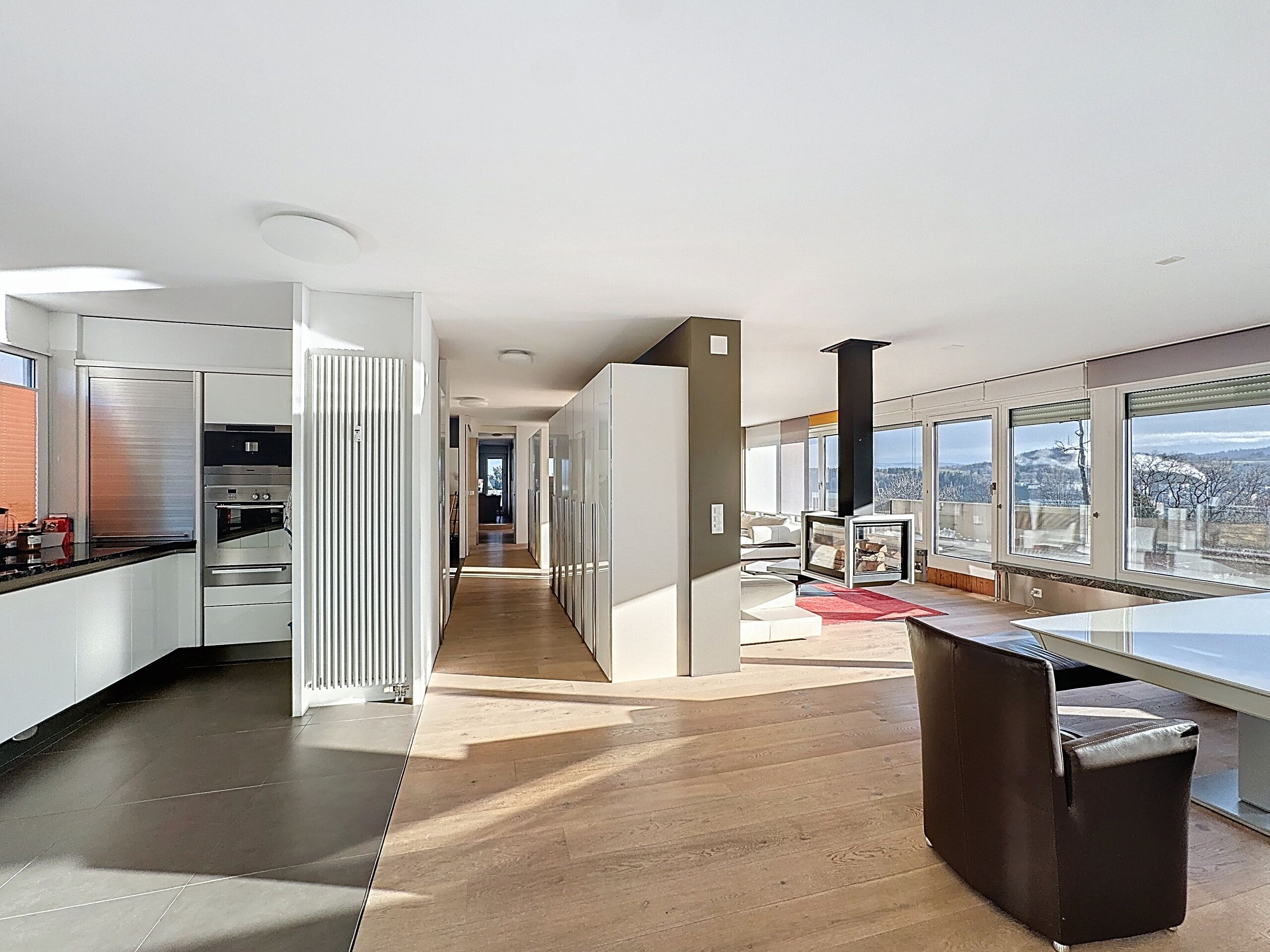 Ce superbe penthouse en attique de 5.5 pièces, d’une surface de 150 m² et situé au 4ème étage, incarne un art de vivre unique, alliant volumes généreux, luminosité exceptionnelle et prestations de standing. Véritable havre de paix, il s’ouvre sur une magnifique terrasse panoramique de 95 m², offrant une vue dégagée sur la ville et les collines environnantes.
